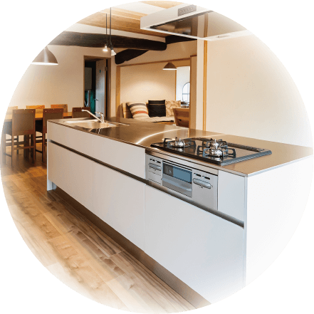 家族との毎日の団欒、そしてゲストとのコミュニケーション。さまざまなシチュエーションにもスマートに映り、機能面でも満足いくスタイルにしたい。そんな癒しとくつろぎの水廻り空間をそれぞれの間取りを活かしたカタチで行います。